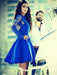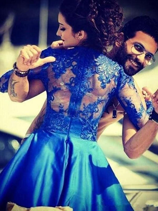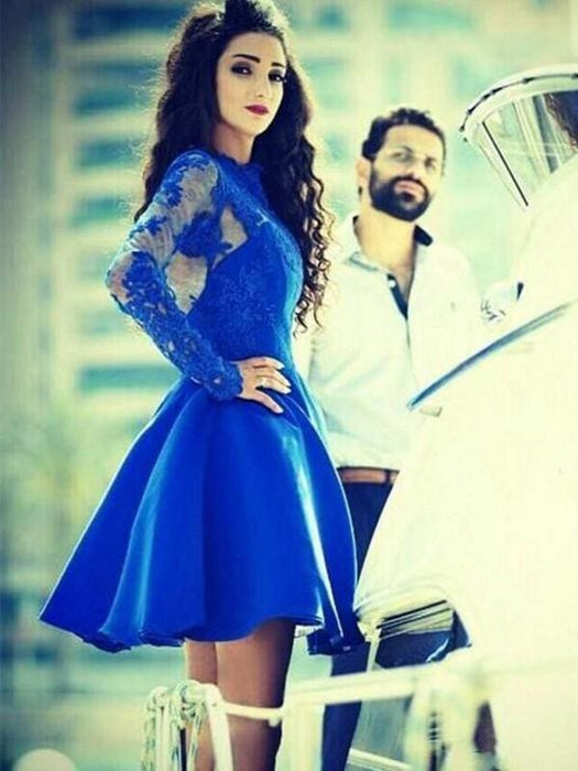 A-Line Satin Jewel Long Sleeves Short Cokctail Dresses With Applique