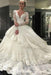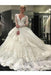 Ivory Deep V-Neck Long Sleeves Lace Appliques Chapel Train Tiered Wedding Dress