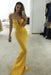 Glorious Fascinating Fabulous Unique Yellow Spaghetti Straps Notched Mermaid Dress Sexy Prom Gown