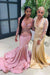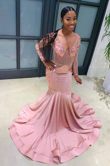 Long Sleeves V Neck Floor Length Prom Dresses with Train