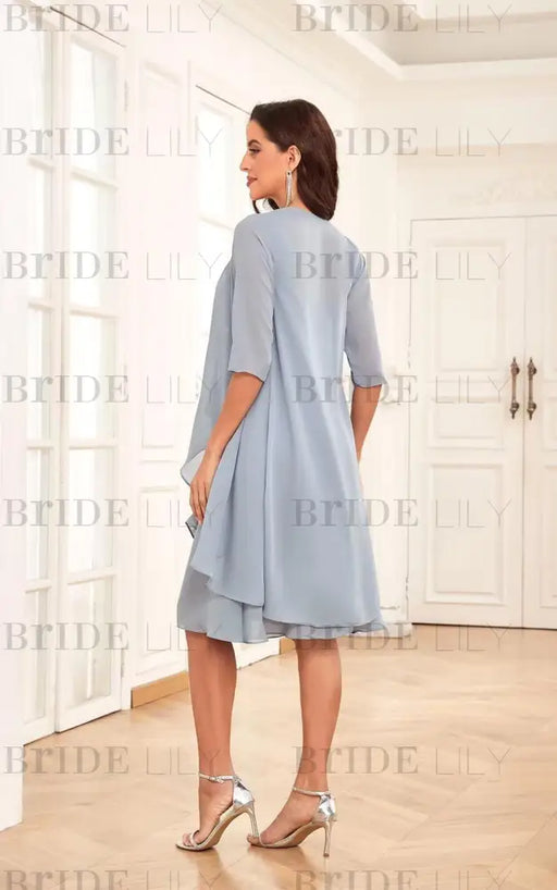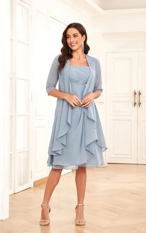 Two Piece Mermaid Mother of the Bride Dress Chiffon 3/4 Sleeves Wedding Guest Outfits