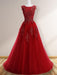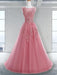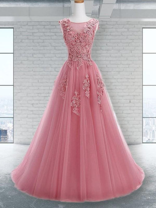 Scoop Sleeveless Floor-Length A-line Tulle Evening Dresses With Appliques