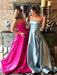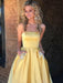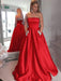 Strapless Beading Satin Evening Party Dresses With Pockets