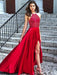 Halter Sleeveless Sweep/Brush A-line Train With Beading Satin Dresses