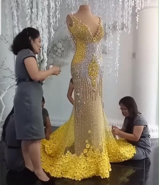 View full detailsKey Features:1. Silhouette: Mermaid2. Fabric: Lace3. Neckline: V-neck4. Hemline/Train: Chapel Train5. Sleeve Length: Sleeveless6. Waistline: Natura...