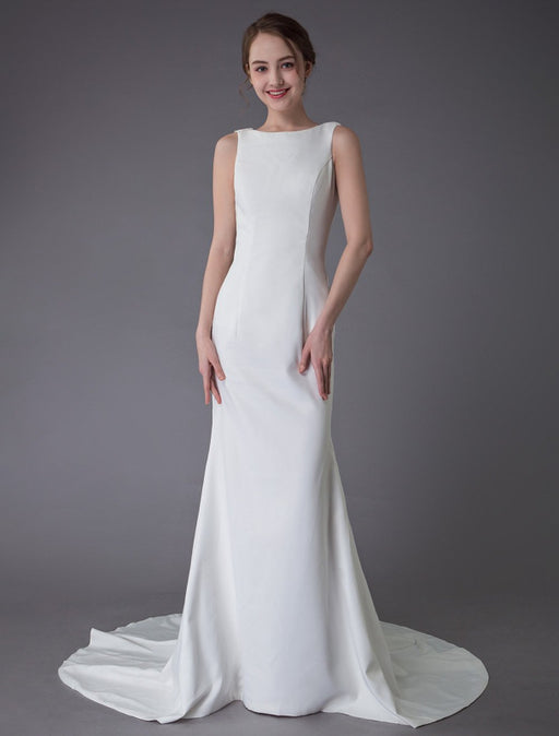 View full detailsKey Features:1. Silhouette: A-line2. Fabric: Lace3. Neckline: Bateau4. Hemline/Train: Chapel Train5. Sleeve Length: Sleeveless6. Waistline: Natural...