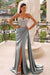Dusty Sage Sleeveless Prom Dress with Spaghetti Strap and Rhinestone Beadings