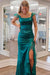 Elegant Square Neckline Satin Lace up Column Prom Dresses with Slit