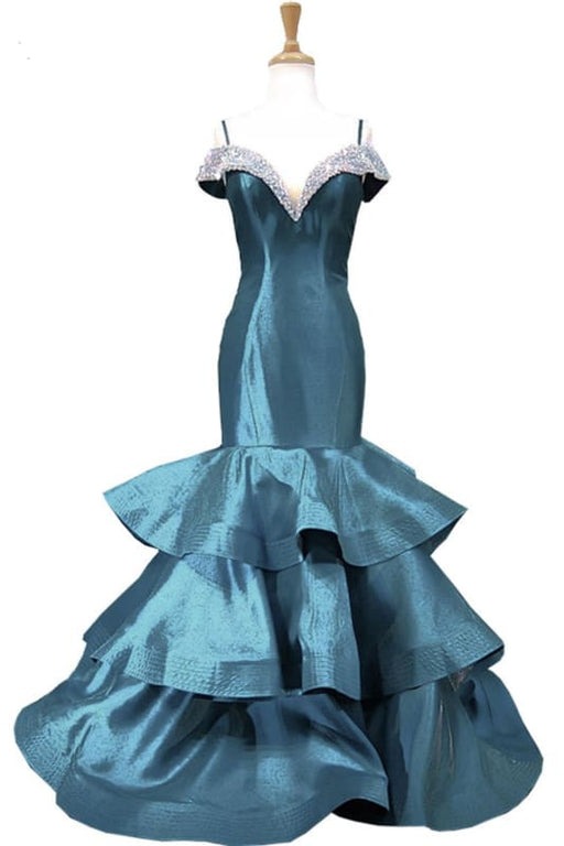 View full detailsMake a statement in this striking off-the-shoulder mermaid gown, crafted with shimmering sequins that catch light from every angle. The elegant bar...