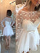 Bridelily A-Line Chiffon Bateau Long Sleeves Short/Mini With Sash/Ribbon/Belt Dresses