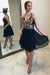 Popular Sexy Deep V-neck Spaghetti Straps Chiffon Homecoming Dresses with Appliques