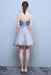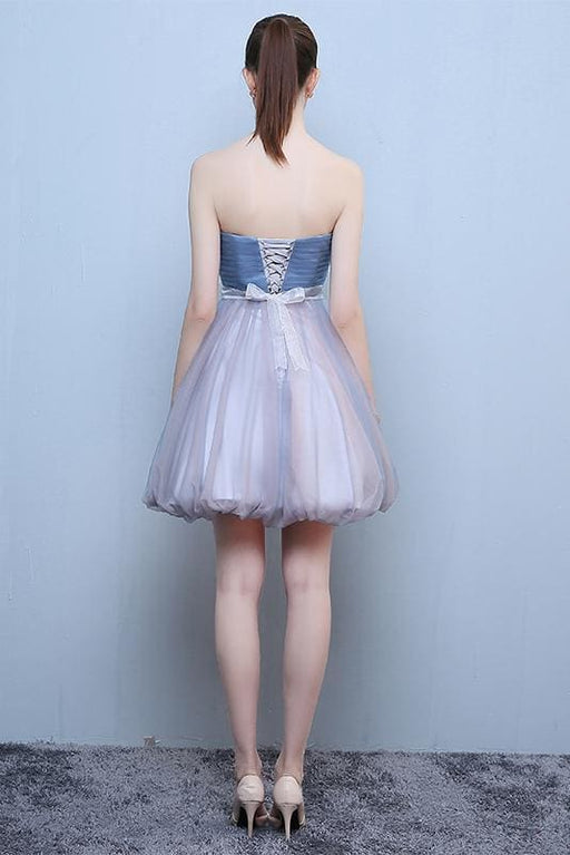 Princess Steel Blue Sweetheart Tulle Short Homecoming Cute Prom Dress with Beads