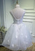 White Straps Tulle Homecoming Dresses with Lace Appliques A Line Short Dress
