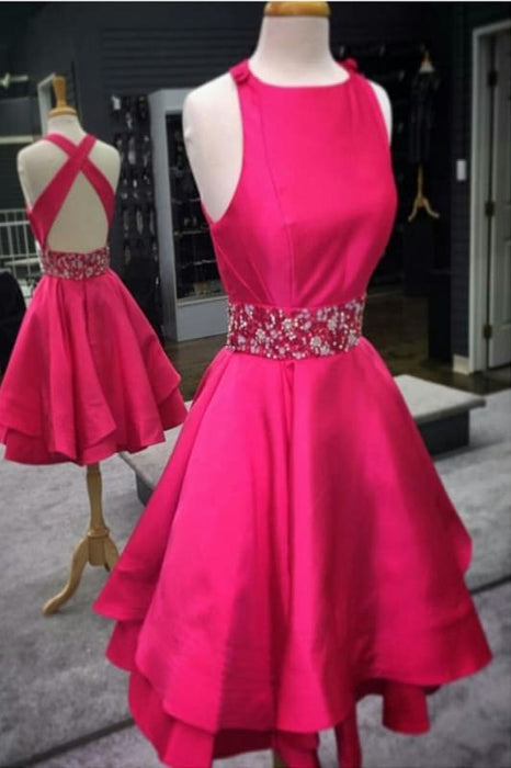 Scoop Neck X-back Knee Length Satin Prom Dress Homecoming Dresses