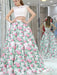 Sexy Princess Two Piece Cap Sleeves White Lace Floral Long Prom Dresses
