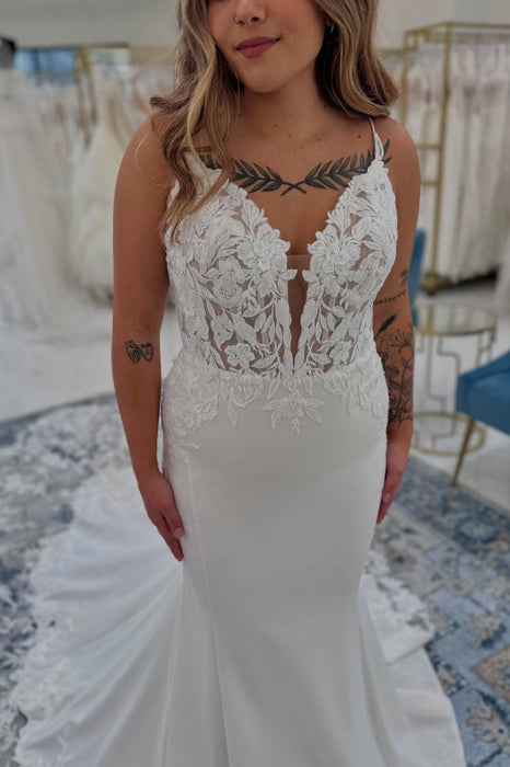Spaghetti Straps Appliques Lace Mermaid Wedding Dresses Chapel Train