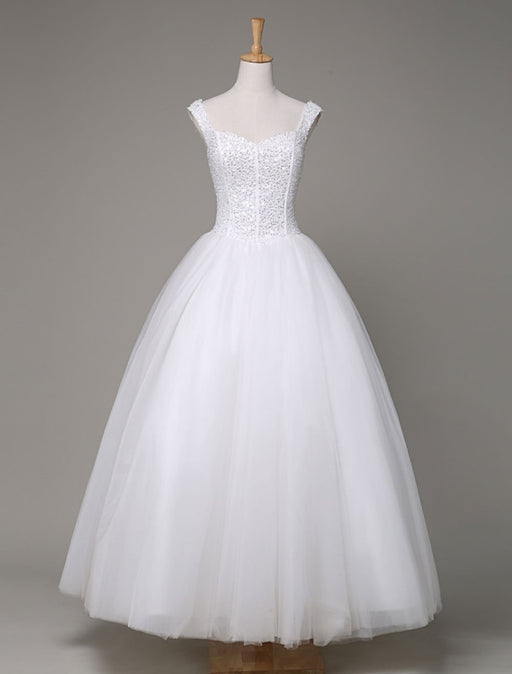 View full detailsSilhouette: A Line Waist: Natural Sleeve Length: Sleeveless Fabric: Tulle, Lace Shown Color: Light Champagne Built-In Bra: Yes