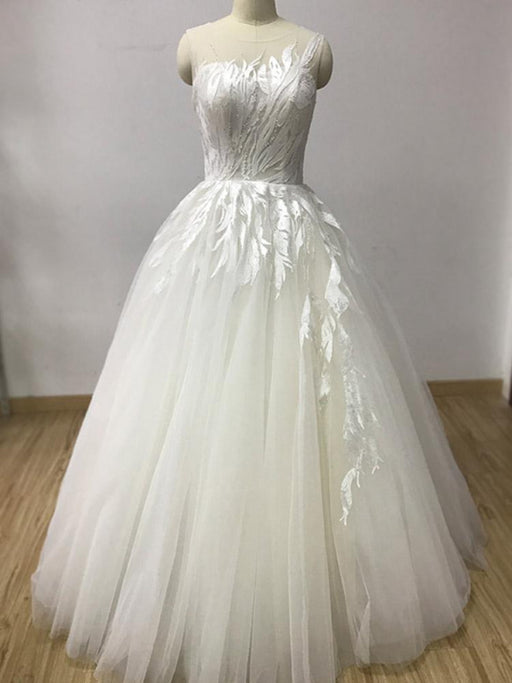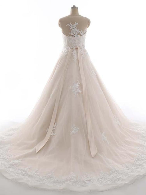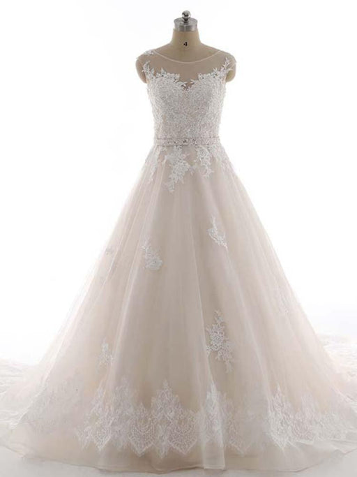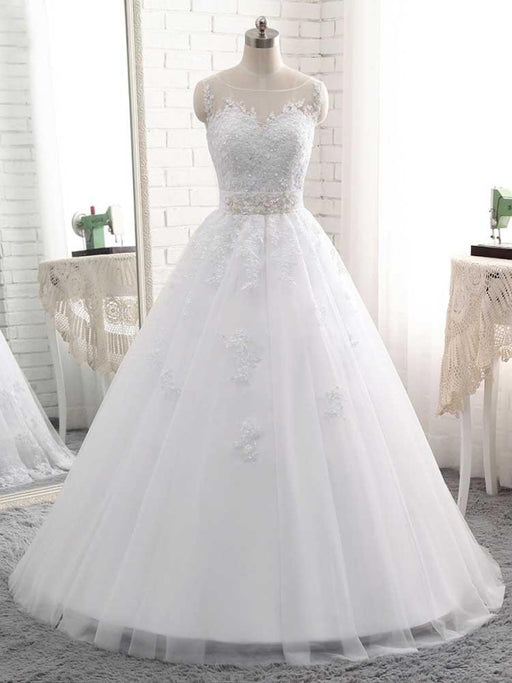 O-Neck Appliques A-Line Wedding Dresses