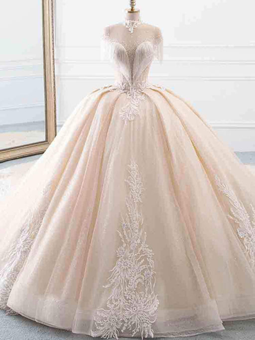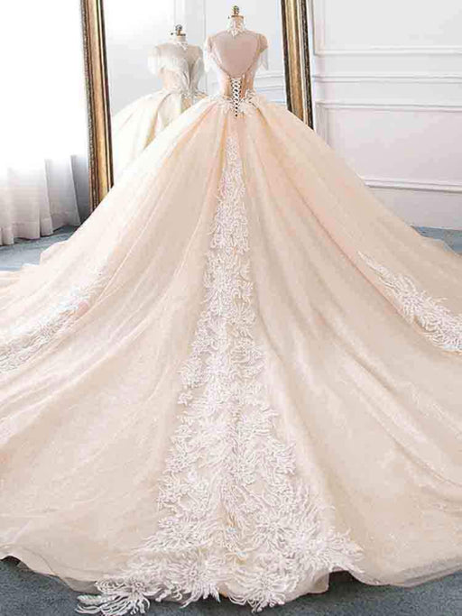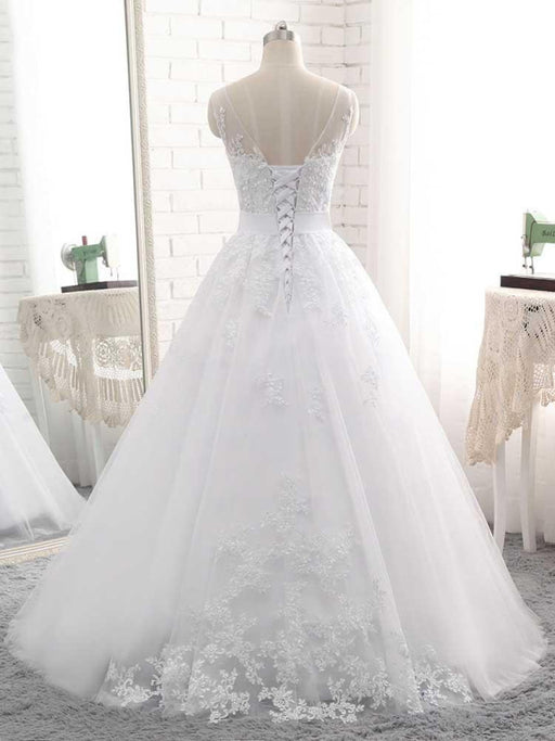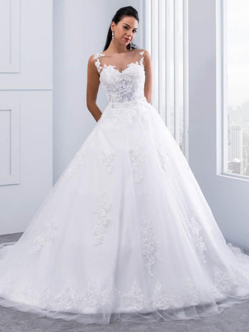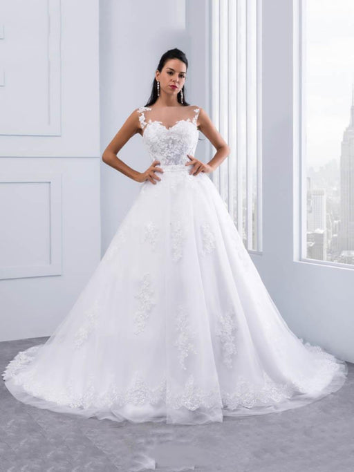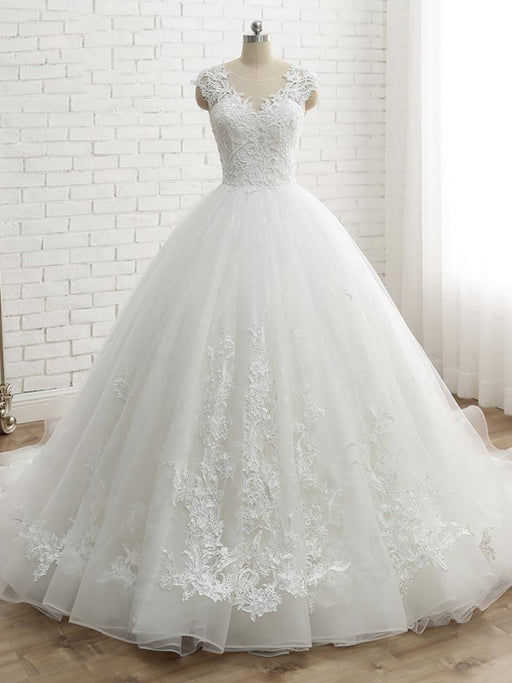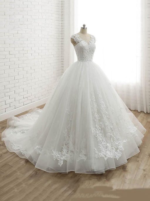 Lace Appliques Ball Gown Wedding Dresses