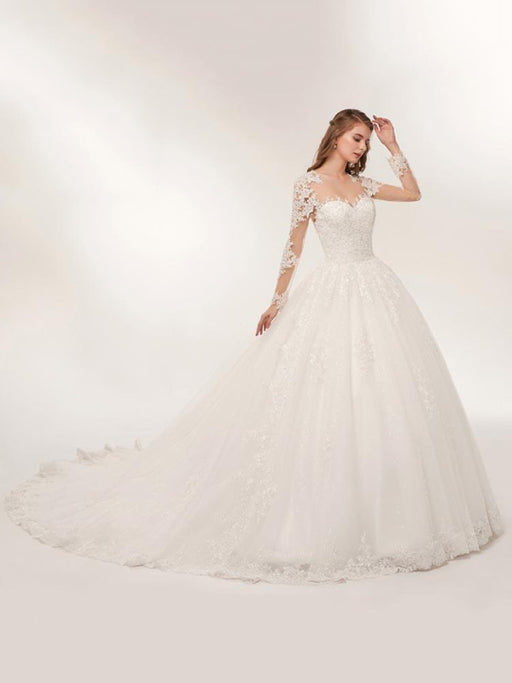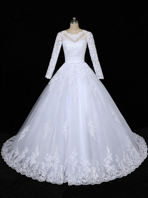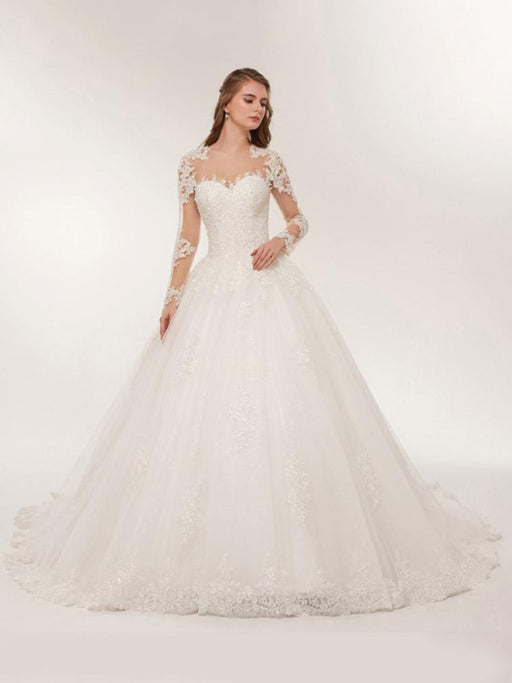 Modest Sheer Neck Long Sleeves Ball Gown Wedding Dresses