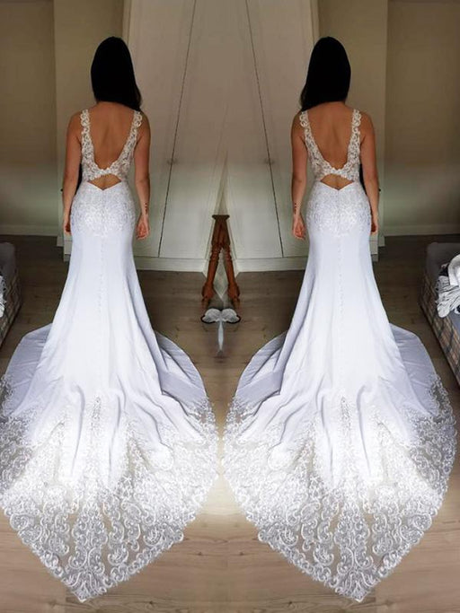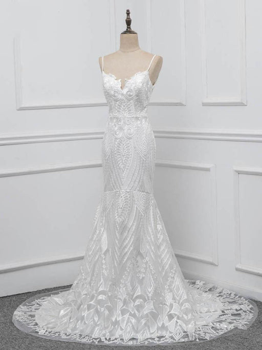 Elegant Spaghetti-Strap Backless Mermaid Wedding Dresses