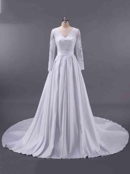 Elegant V-Neck Long Sleeves Lace Ruffles Wedding Dresses