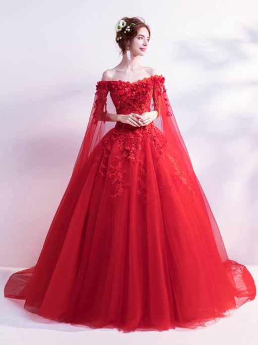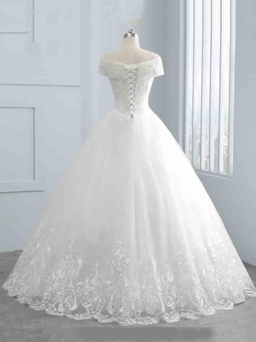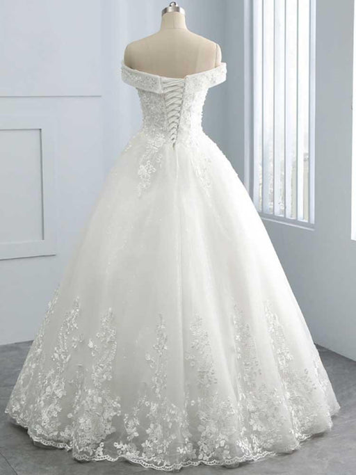 Off-the-Shoulder Lace-Up Ball Gown Wedding Dresses