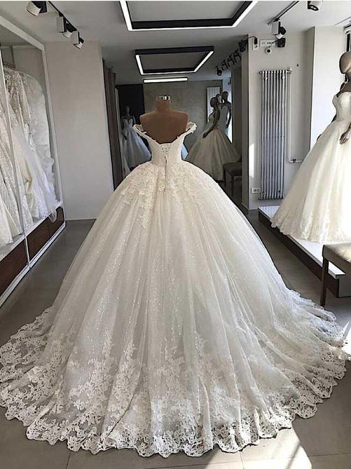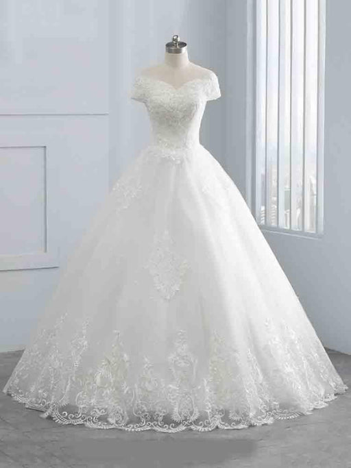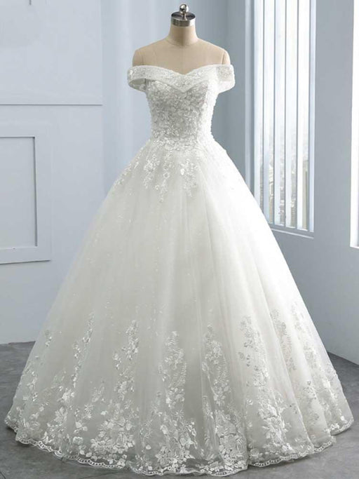 Gorgeous Off-The-Shoulder Lace Ball Gown Wedding Dresses