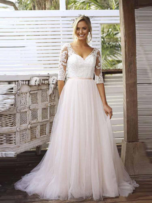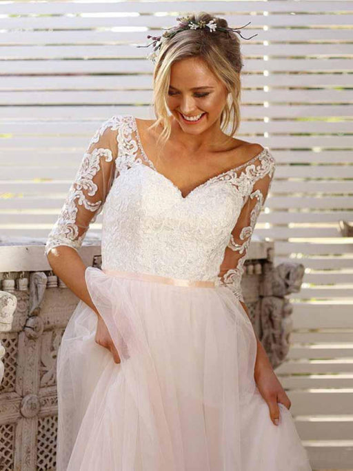 Elegant Lace A-Line Tulle Wedding Dresses