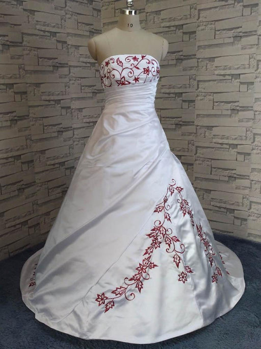 Modest Strapless Beading Sweep Train A-Line Wedding Dresses
