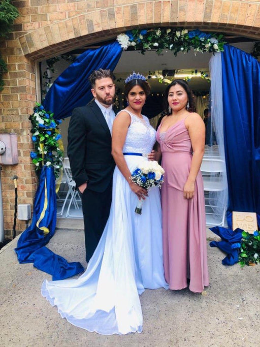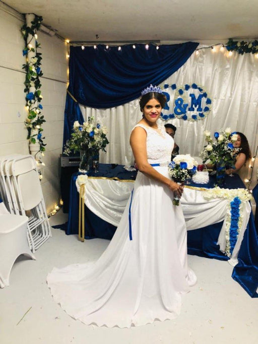 Elegant Bateau Lace Appliques Ribbon Wedding Dresses