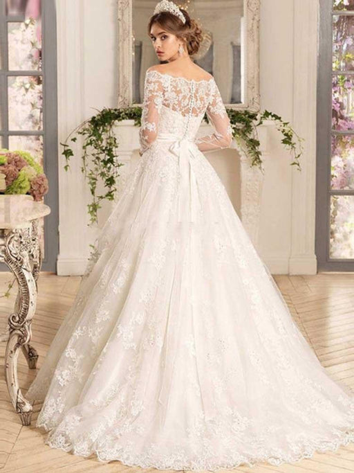 Off-the-Shoulder Lace Applique Wedding Dresses