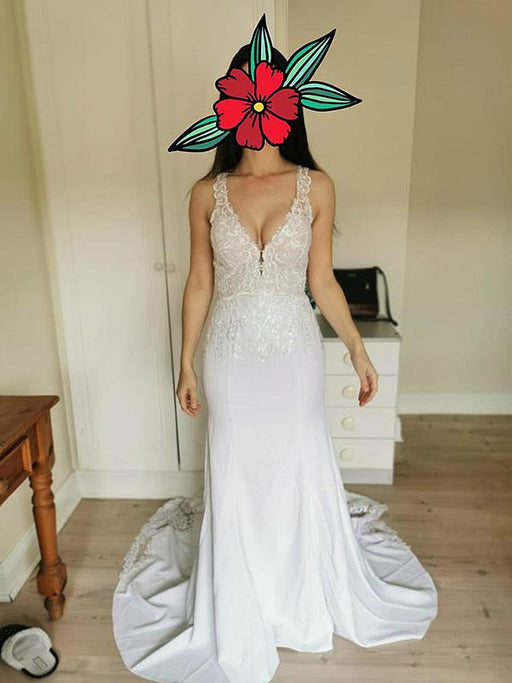 V-Neck Lace Mermaid Wedding Dresses