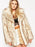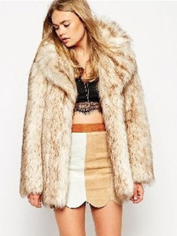 Women Faux Fur Coat Long Sleeve Notch Collar Beige Women Faux Fur Jacket