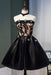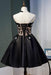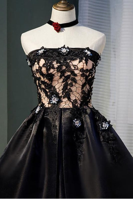 Black Strapless Satin Homecoming Lace Graduation Dress with Crystals