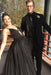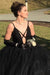 Fashion Spaghetti Straps Black Prom Floor Length Evening Party Dresses