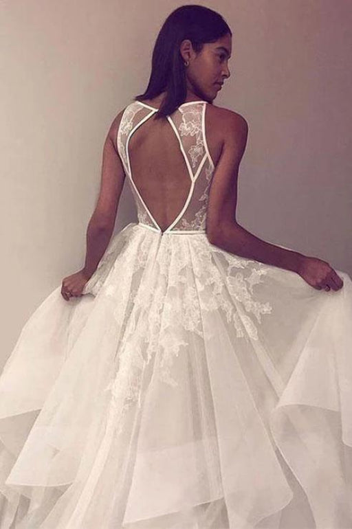 View full detailsKey Features:Neckline:V NeckSleeve Length(cm):SleevelessTrain:Sweep TrainBack Design:BacklessDress Fabric:Lace/TulleDresses Length:As PicturePlus...