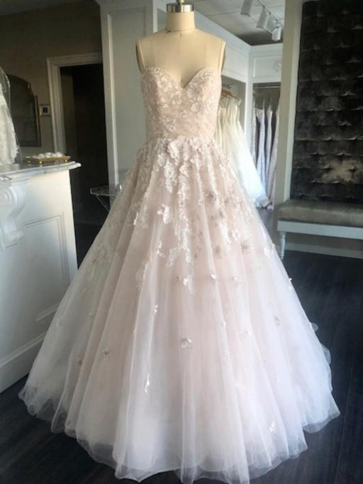 View full detailsKey Features:Neckline:SweetheartSleeve Length(cm):SleevelessTrain:Sweep TrainDress Fabric:Lace/TulleDresses Length:As PicturePlus Size:Yes, Up to...