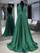 A Line Halter Neck Backless Green Long Prom, Backless Green Formal, Green Evening