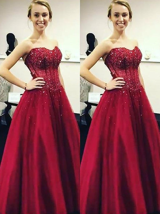 Ball Gown Sleeveless Sweetheart Floor-Length With Beading Net Dresses