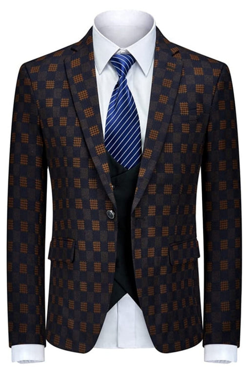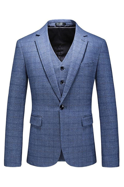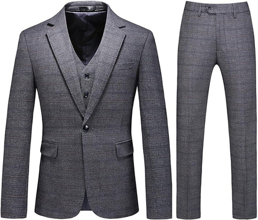 Button:Single BreastedOccasion:Prom, Business, WeddingNeckline:Notched LapelMaterial:Polyester BlendPattern:PlaidPiece:3 PiecePocket:With Flap