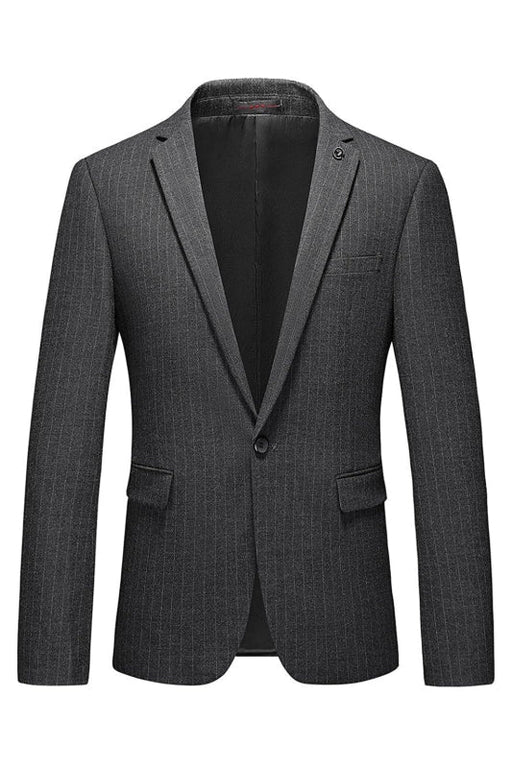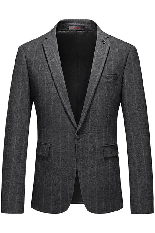 Chic Gray Peaked Lapel Striped Business Suits One Button Two Pieces Blazer Set Prom Suits