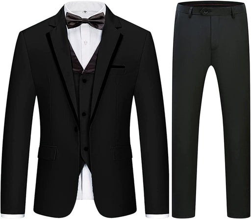 Black Notched Lapel Three Pieces Business Suits Dinner Party Prom Suit