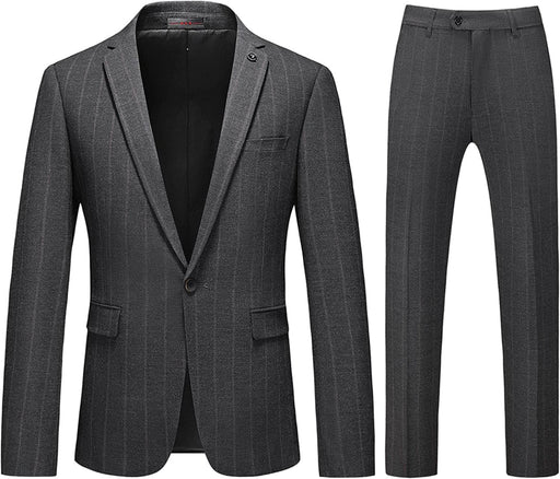 Button:Single BreastedOccasion:Prom, Business, WeddingNeckline:Notched LapelMaterial:Polyester BlendPattern:StripedPiece:2 PiecePocket:With Flap