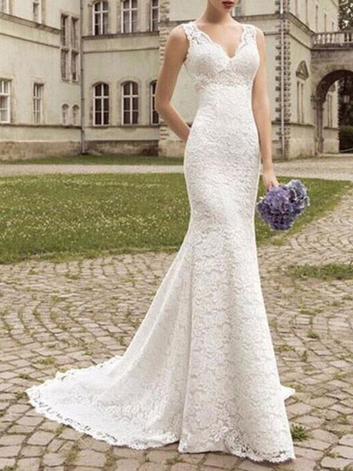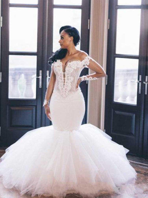 Elegant Appliques Lace Mermaid Wedding Dresses