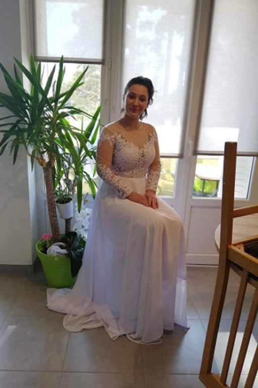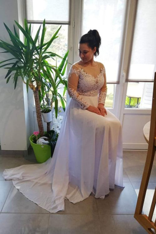 Long Sleeves Lace Tulle Aline Wedding Dresses