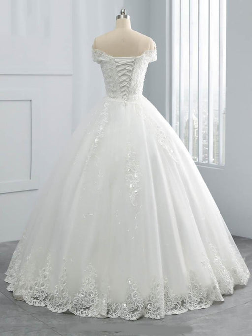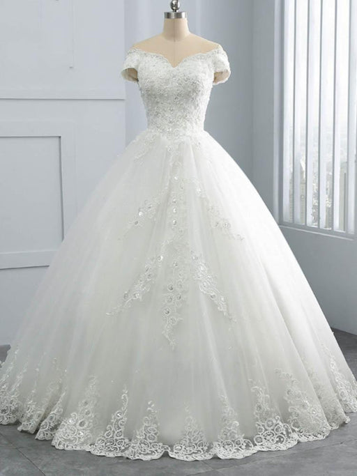 Off-the-Shoulder Lace Sequins Ball Gown Wedding Dresses
