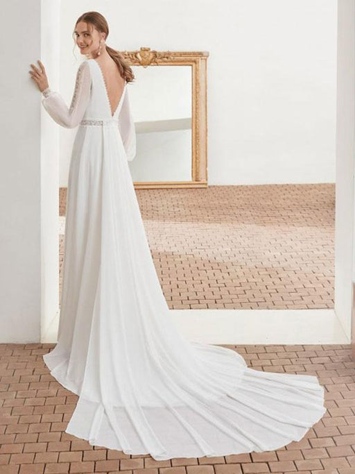 Elegant V-Neck Long Sleeves Mermaid Wedding Dresses