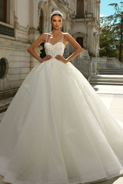 Ivory Aline Wedding Dress Tulle Plus Size Bridal Dress with Lace Appliques