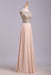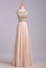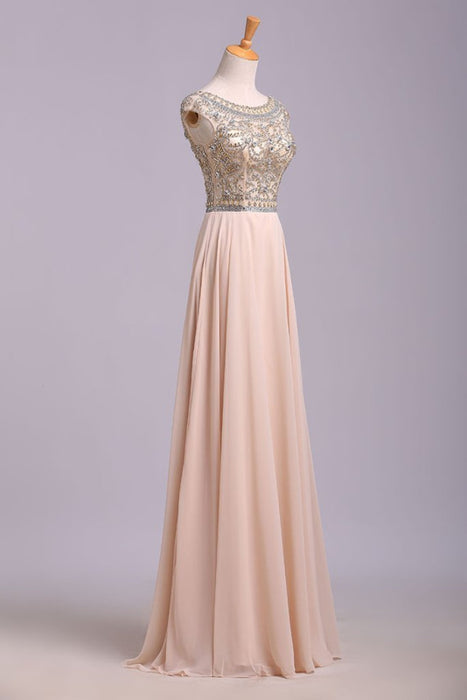 A Line Floor Length Scoop Chiffon Prom Dress Beading Long Evening Dresses